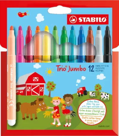 STABILO Trio Jumbo en étui carton de 12 feutres de coloriage. Retrouvez le détail des 12 couleurs dans la rubrique caractéristiques.