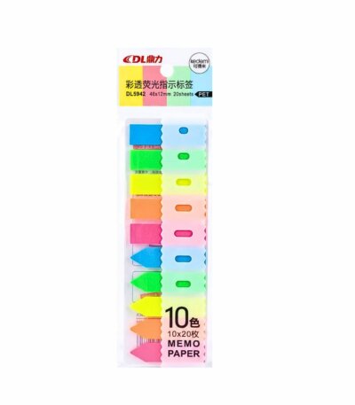Marque-pages Adhésifs Néon DL – Index Repositionnables PET – 10 Couleurs (200 Feuilles)