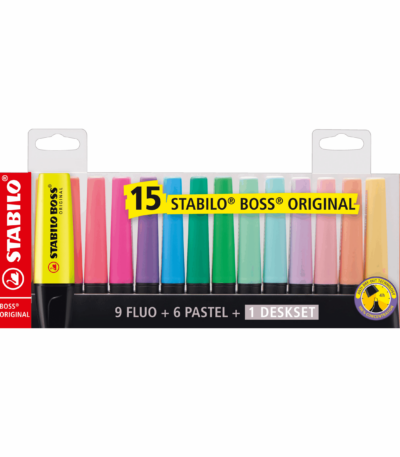 Surligneur STABILO BOSS ORIGINAL – Set de bureau de 15 surligneurs