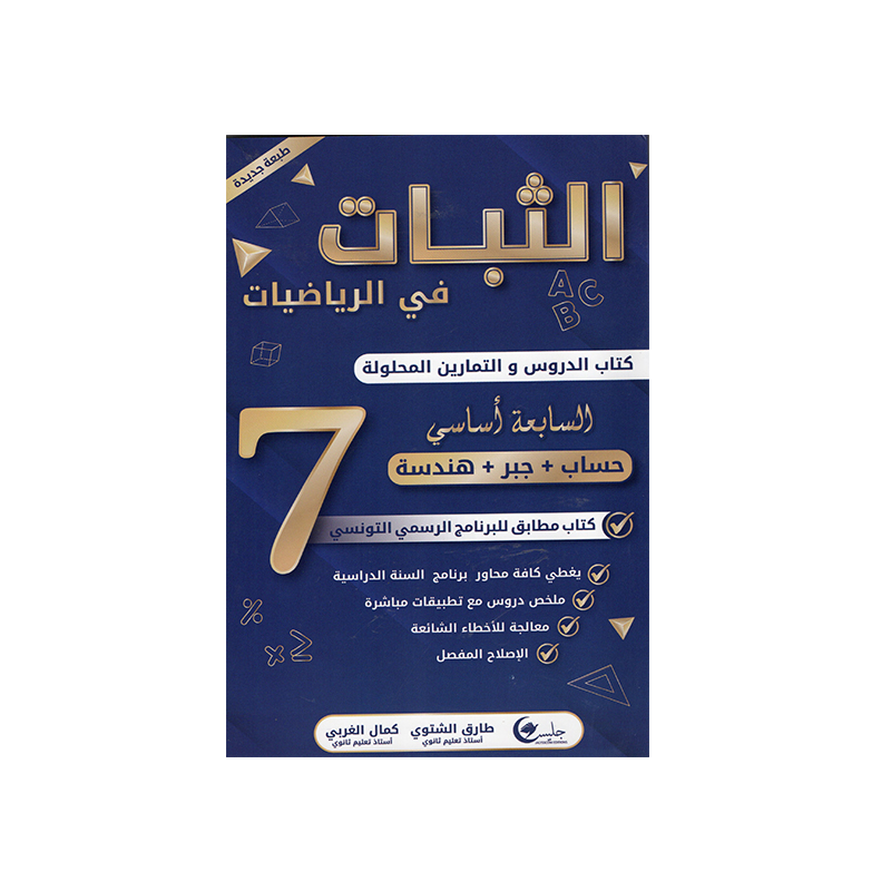 إن العمل المتواصل باستخدام كتاب **الثبات في الرياضيات س7 دروس وتمارين محلولة** يضمن للتلميذ ليس فقط النجاح، بل التميز في مادة الرياضيات. هذا المرجع هو الأداة المثالية لتقوية الأساسيات الرياضية اللازمة للمراحل المتقدمة. لا تتردد في تأمين الأساس الأكاديمي لطفلك في **السنة السابعة أساسي** بفضل هذا الكتاب الموثوق الذي يجمع بين الشرح الواضح والحلول التفصيلية.