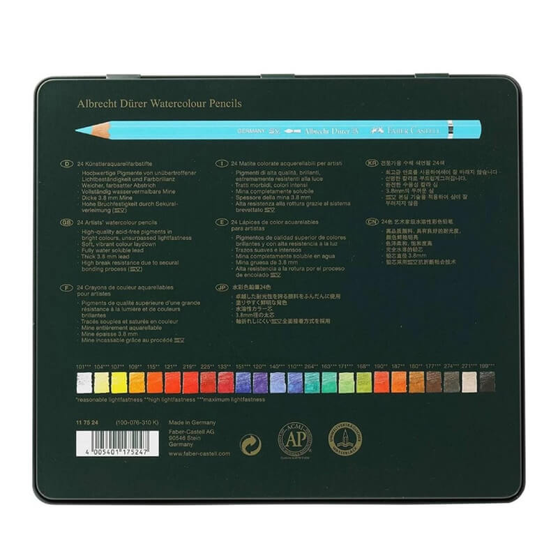 La gamme Albrecht Dürer est le sommet de la qualité Faber-Castell. En effet, elle répond aux exigences des professionnels. Voici les atouts de ce set de 24 :
