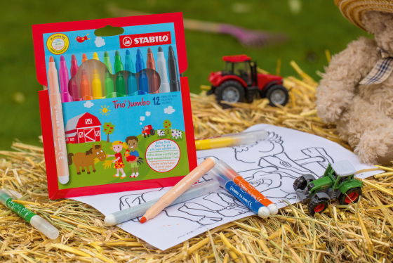 STABILO Trio Jumbo est un feutre de coloriage spécialement pensé pour les plus jeunes enfants à partir de 3 ans. Grâce à sa pointe extra-large bloquée ultrarésistante à la pression et offrant un tracé de 3 mm, il va permettre aux plus petits de colorier rapidement de grandes surfaces. Sa zone de préhension triangulaire assure une prise en main optimale : dessiner, colorier et créer pendant des heures n’est plus un problème ! Et si dans un élan créatif l’enfant vient à se tacher, pas de panique : l’encre du feutre STABILO Trio Jumbo est super lavable sur la plupart des textiles, il suffit de mettre les vêtements à laver en machine avec votre lessive habituelle (température de lavage conseillée : 40°C).