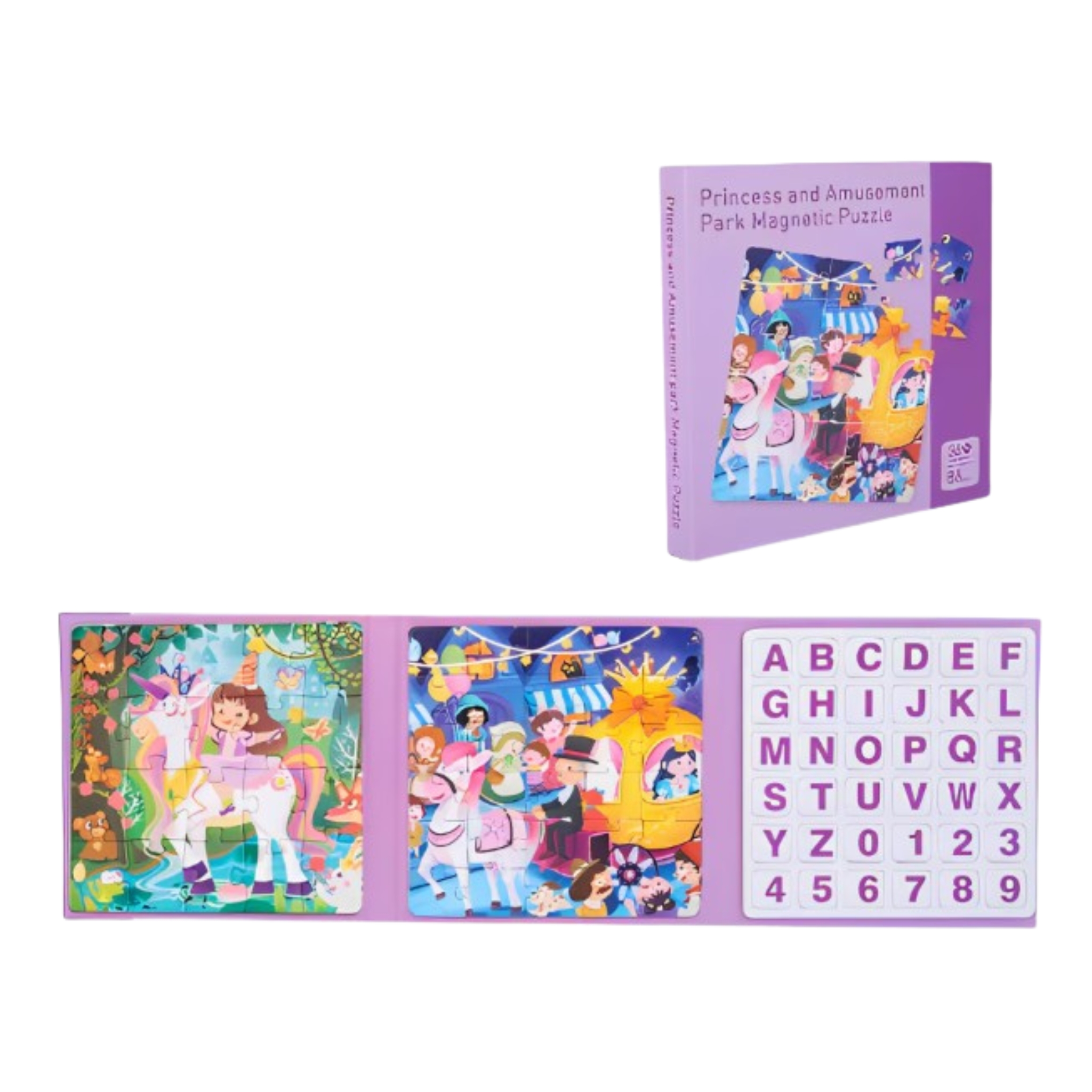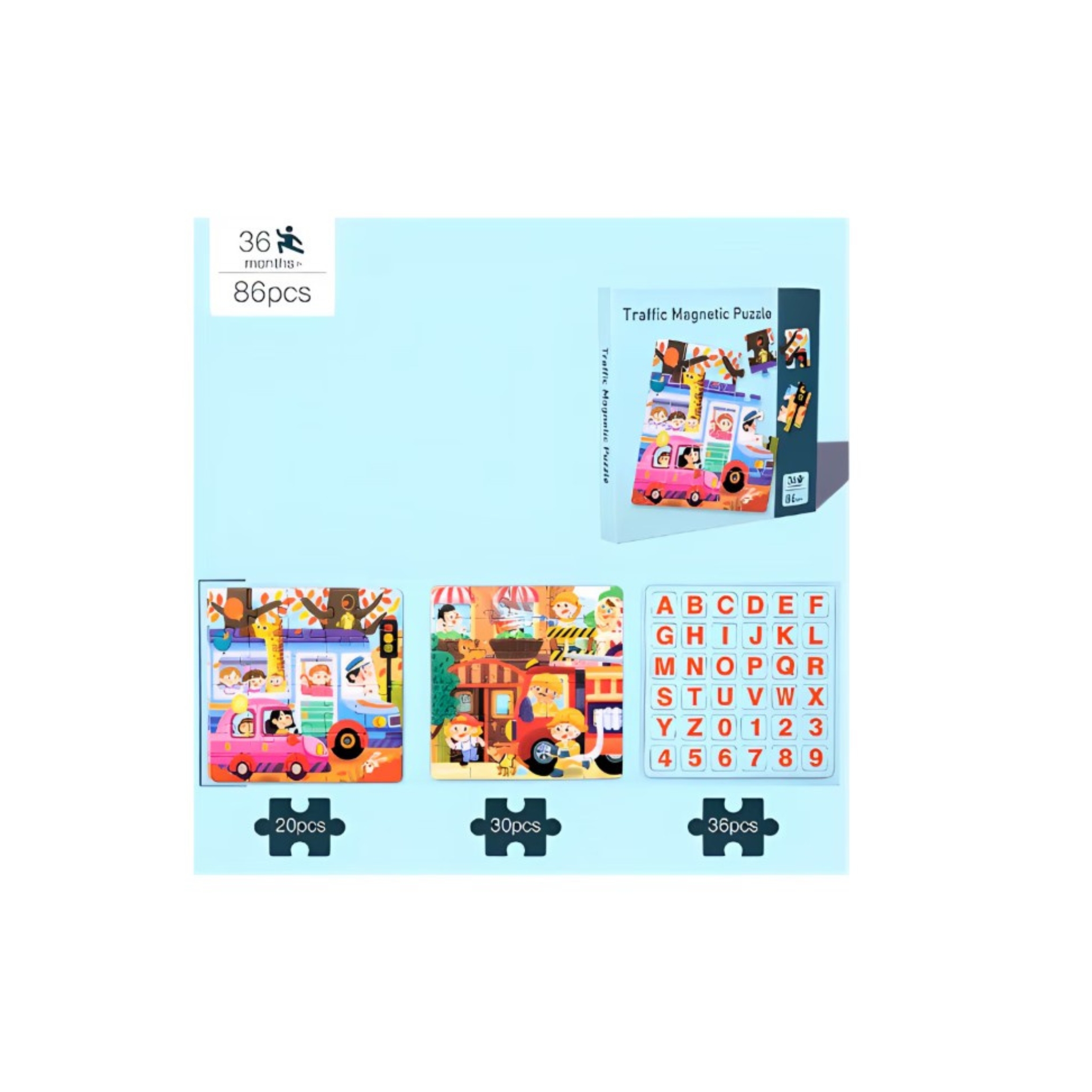 🌟 Puzzle Magnétique Réversible 3-en-1 (86 Pièces) – Princesse, Trafic & Lettres/Chiffres, Cadeau Enfant Tunisie