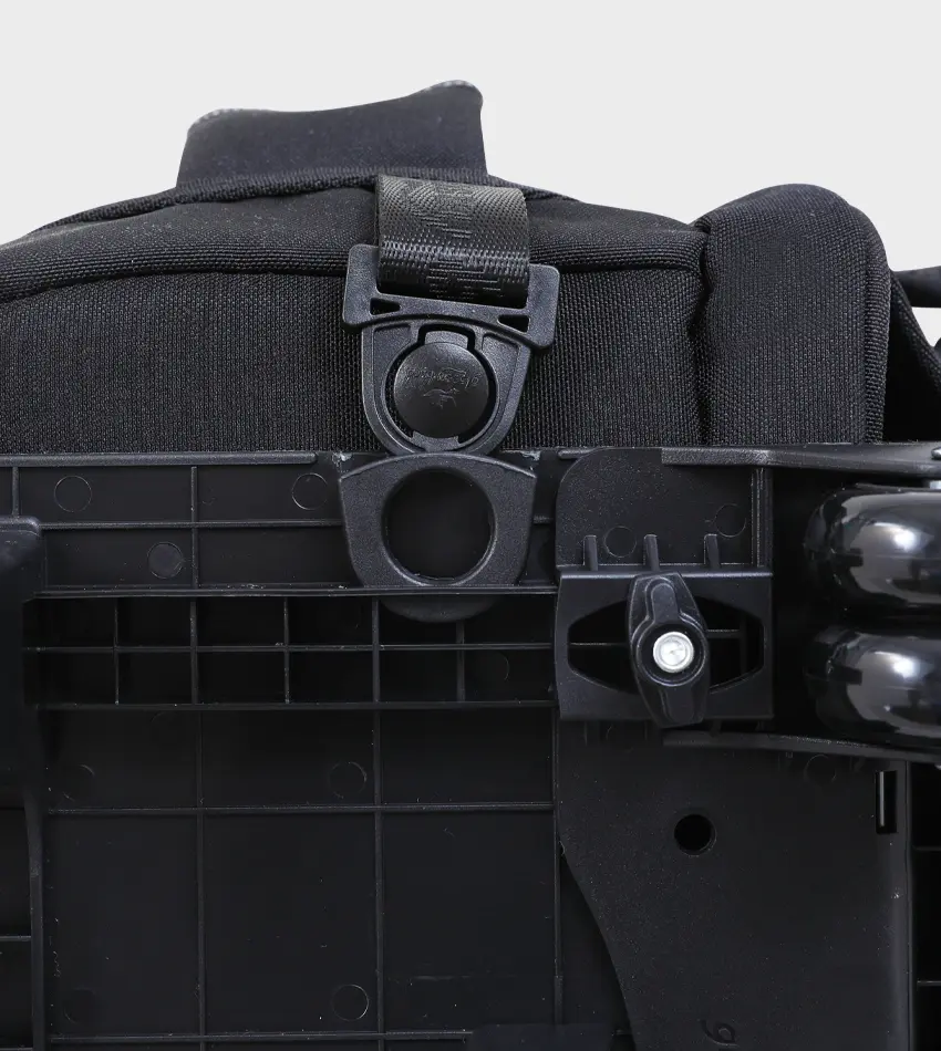 Sac équipé d’une doublure intérieure et d’une mousse comprimée au fond pour répartir le poids